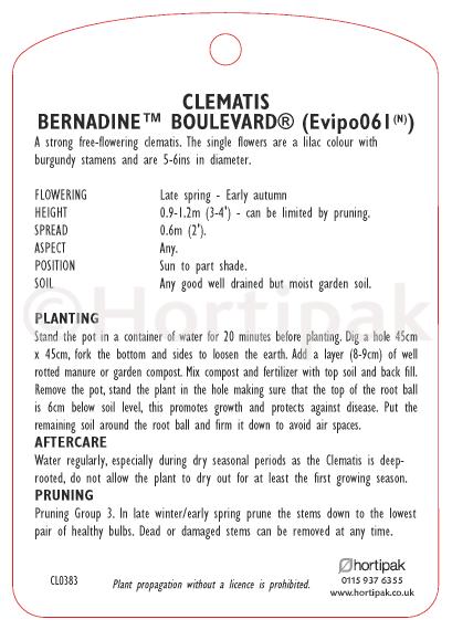 Clematis Bernadine (Elastic Loop Attached)